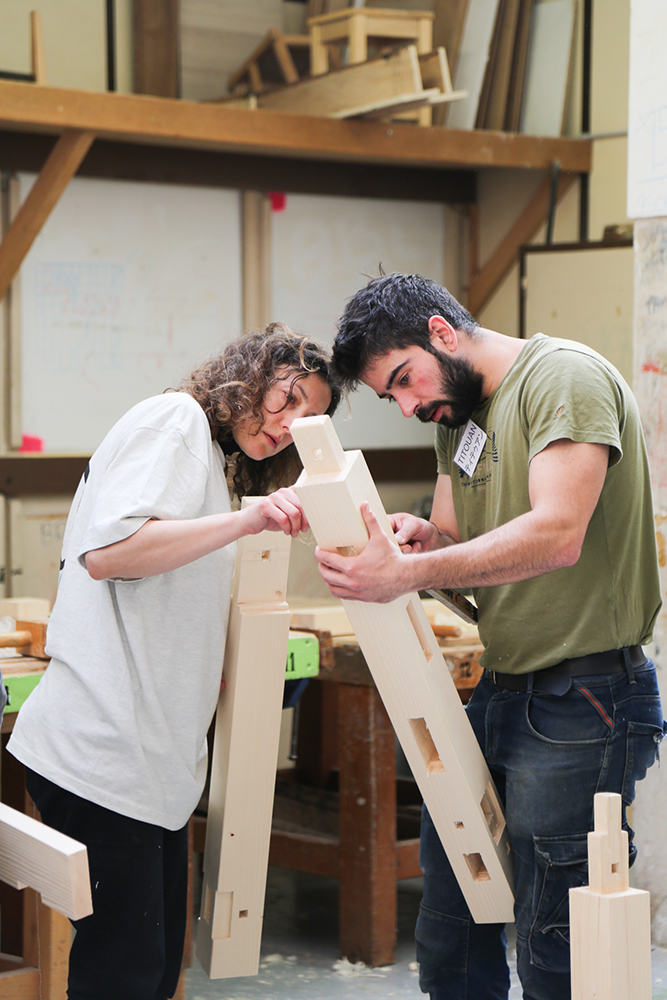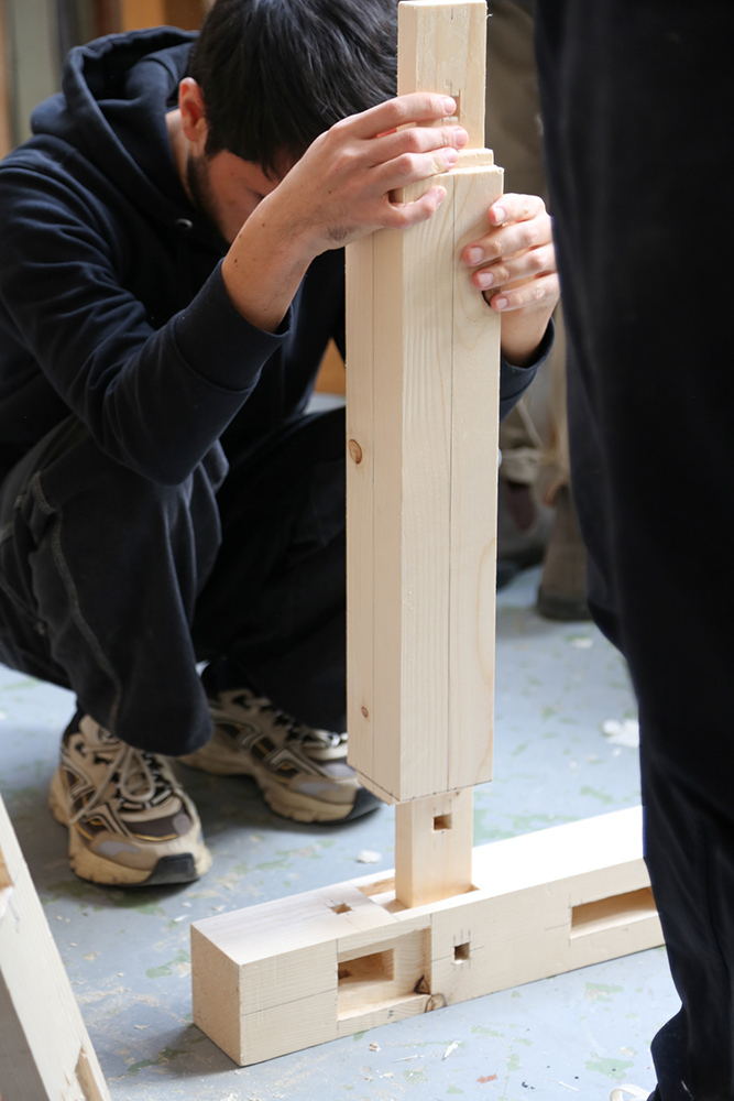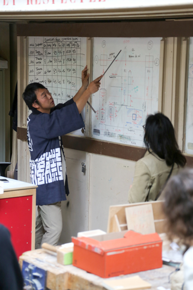 Une semaine de transmission avec 12 participants et deux charpentiers japonais Ryo Fujimoto et Takumi Umemoto.